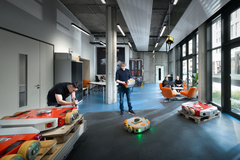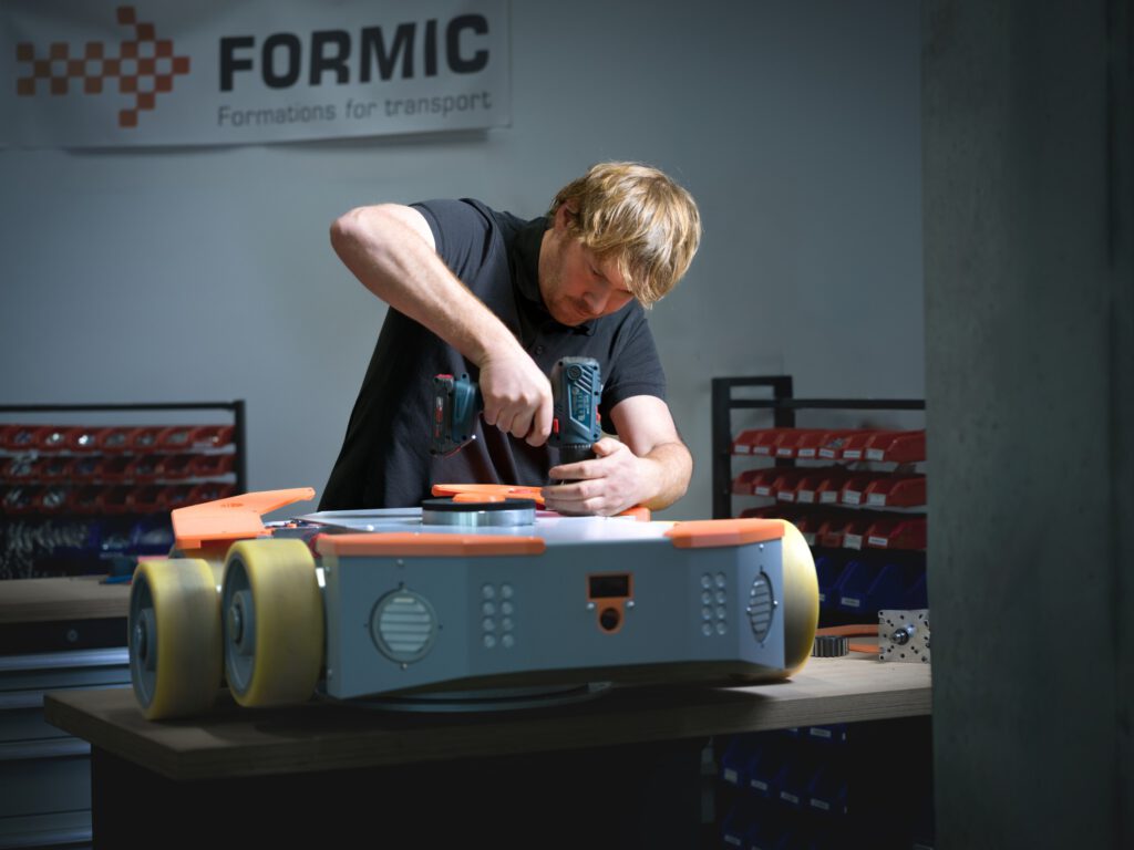 Dafür baut FORMIC Schwärme aus kompakten Fahrzeugen, die verschiedenste Lasten gemeinsam anheben und in Formation bewegen können. Die Entwicklung der ferngesteuerten Fahrzeuge startete 2020 als Spin Off des KIT.